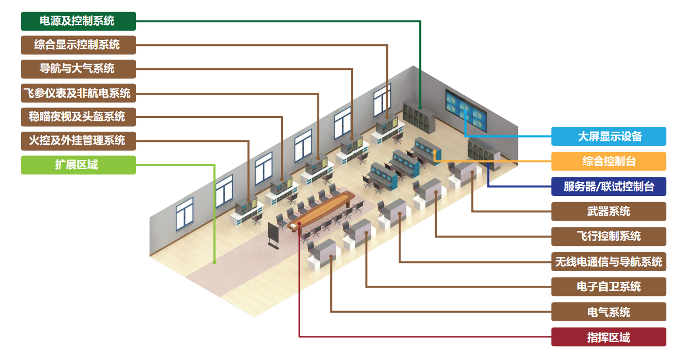 統測試,適用的系統包括綜合顯示控制系統、導航與大氣系統、 飛參儀表及非航電系統、穩瞄夜視及頭盔系統、火控及外掛管理系統、